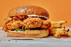 Popeyes serves chicken “marinated for 12 hours in our signature blend of Louisiana herbs & spices” as burgers, wings and wraps.